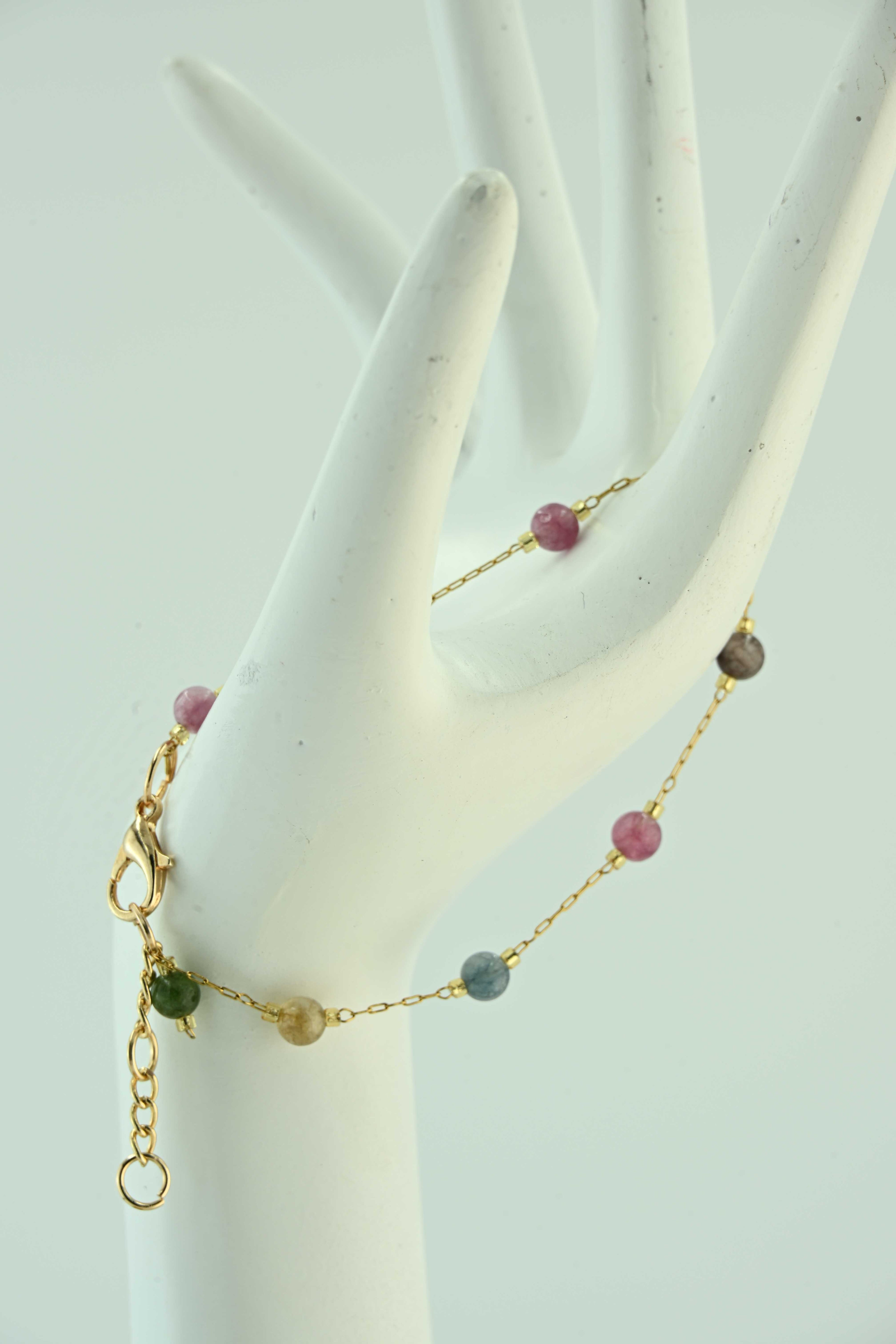 elikatna, ręcznie wykonana bransoletka na subtelnym łańcuszku to propozycja dla osób ceniących minimalizm i elegancję. Ozdobiona koralikami w harmonijnych kolorach, pięknie prezentuje się zarówno solo, jak i w zestawie z inną biżuterią. Doskonale dopasowuje się do nadgarstka, podkreślając kobiecy styl i dodając blasku każdej stylizacji. To idealny wybór na prezent lub na wyjątkowe okazje.Opowiedz historię swojej marki za pomocą obrazów