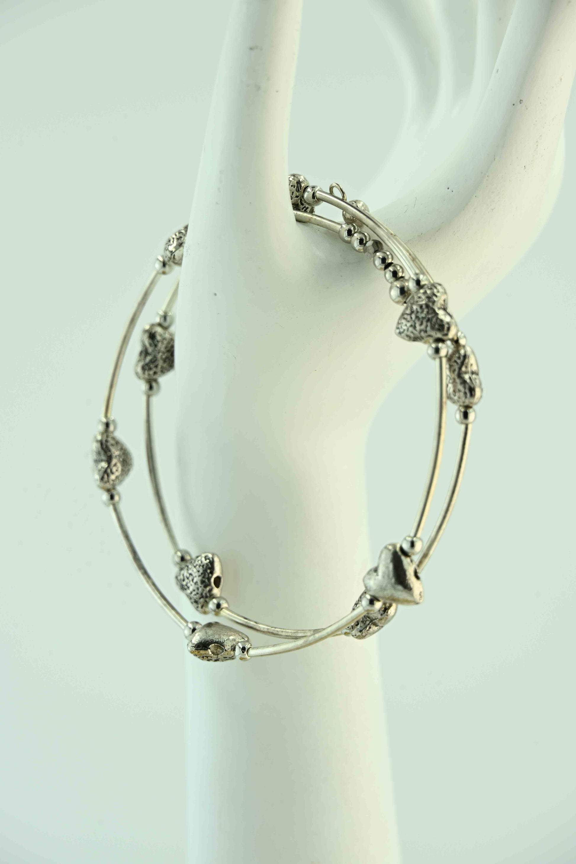 Bransoletka w srebrnym kolorze z przekładkami w kształcie serc – ręcznie robiona biżuteria handmade – bellamaga