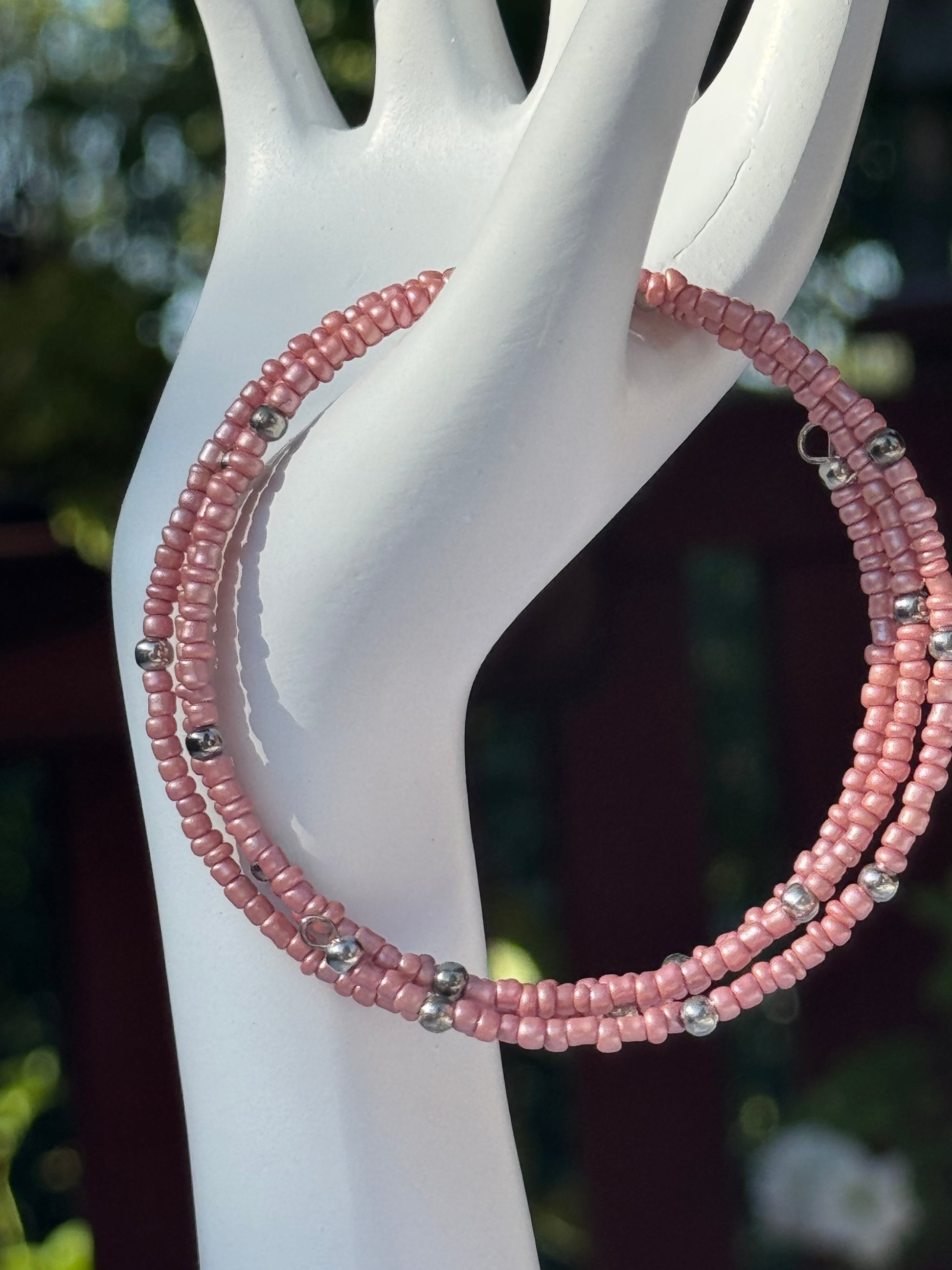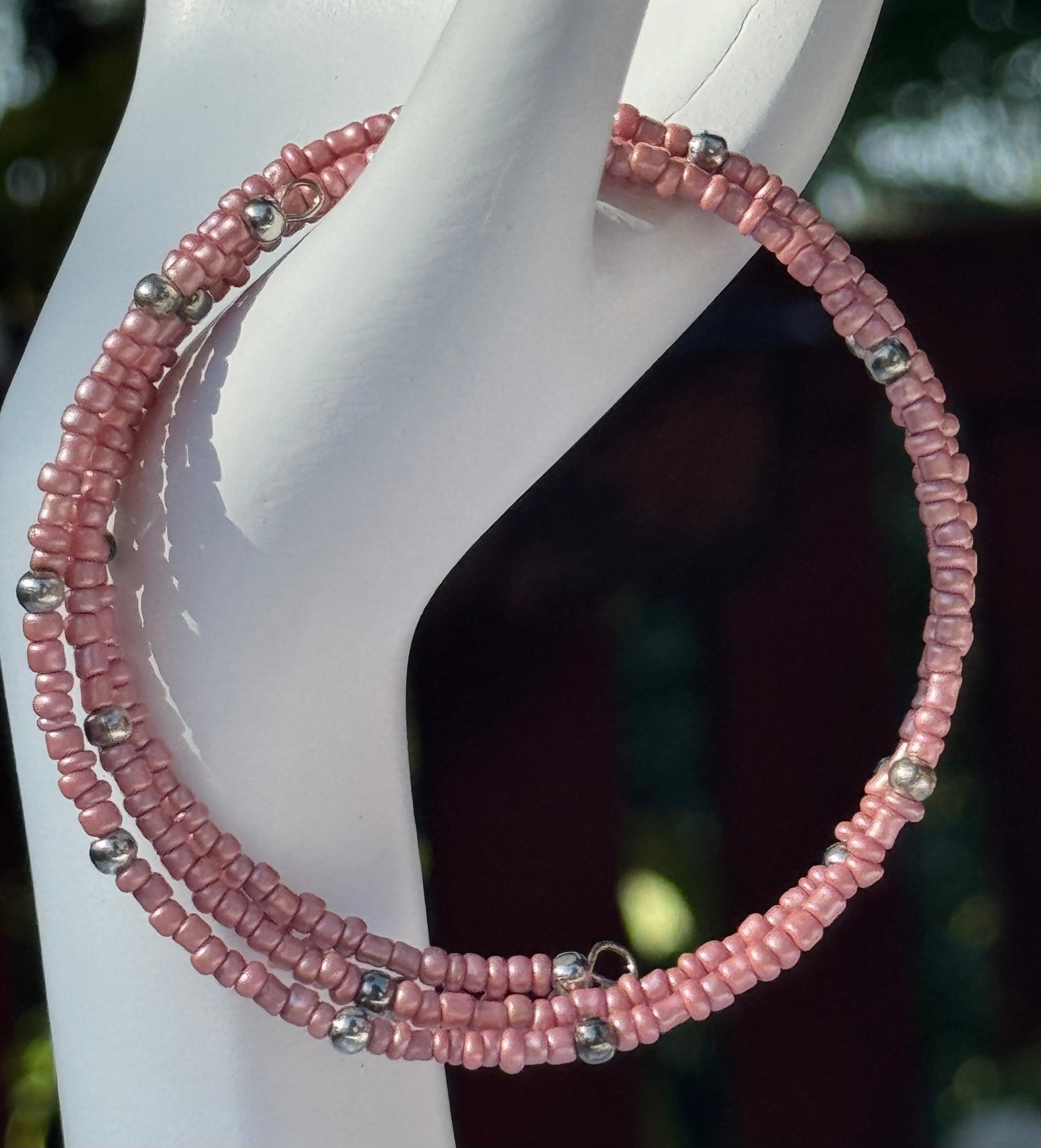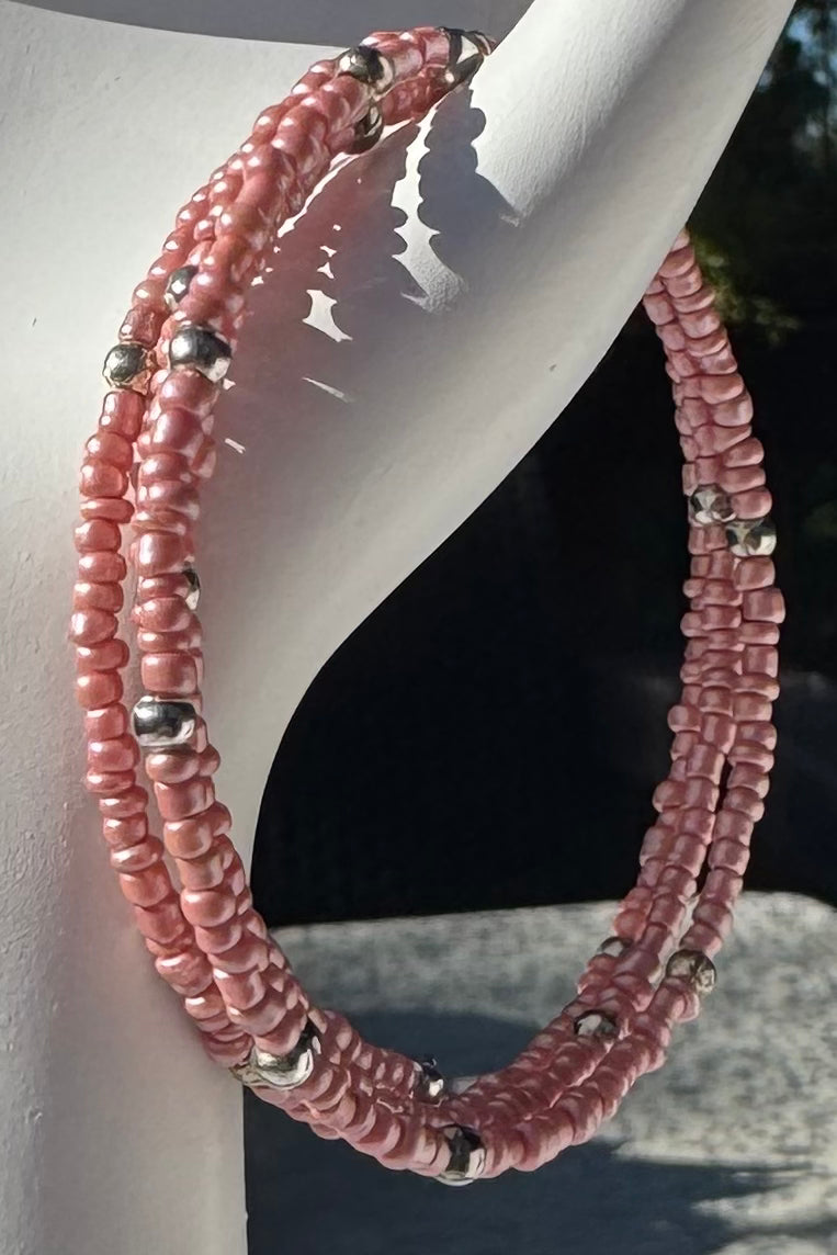 Bransoletka z drobnych koralików kolor łososiowy na drucie pamięciowym