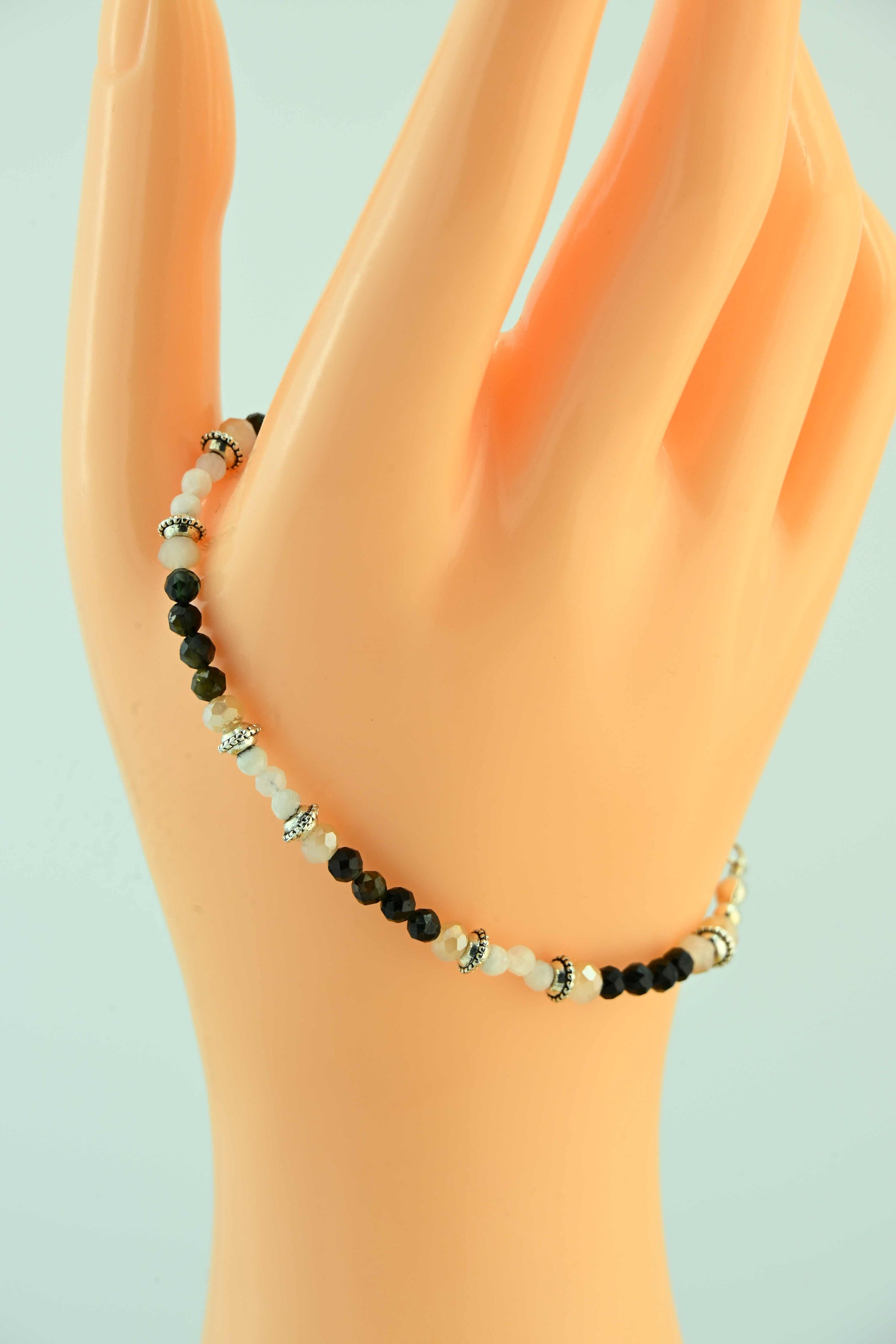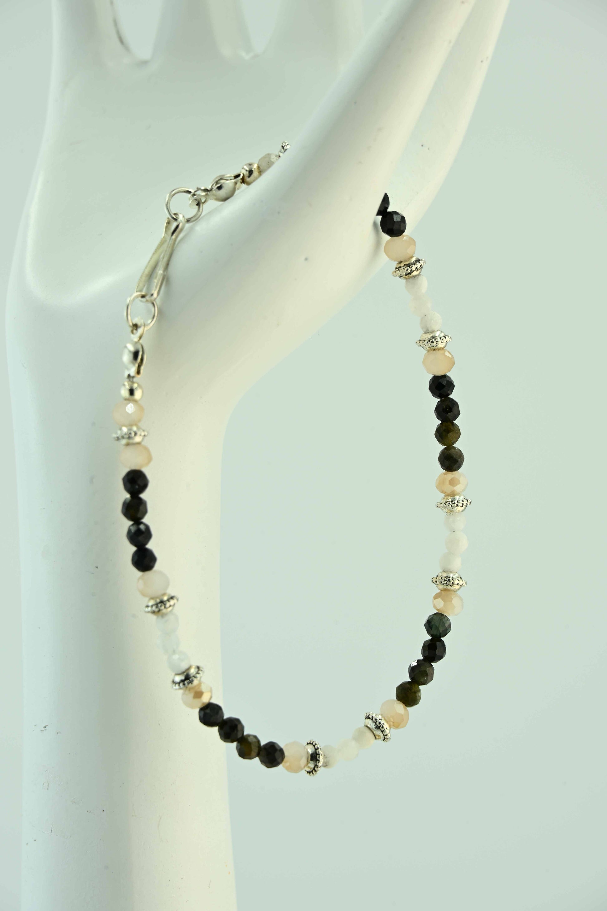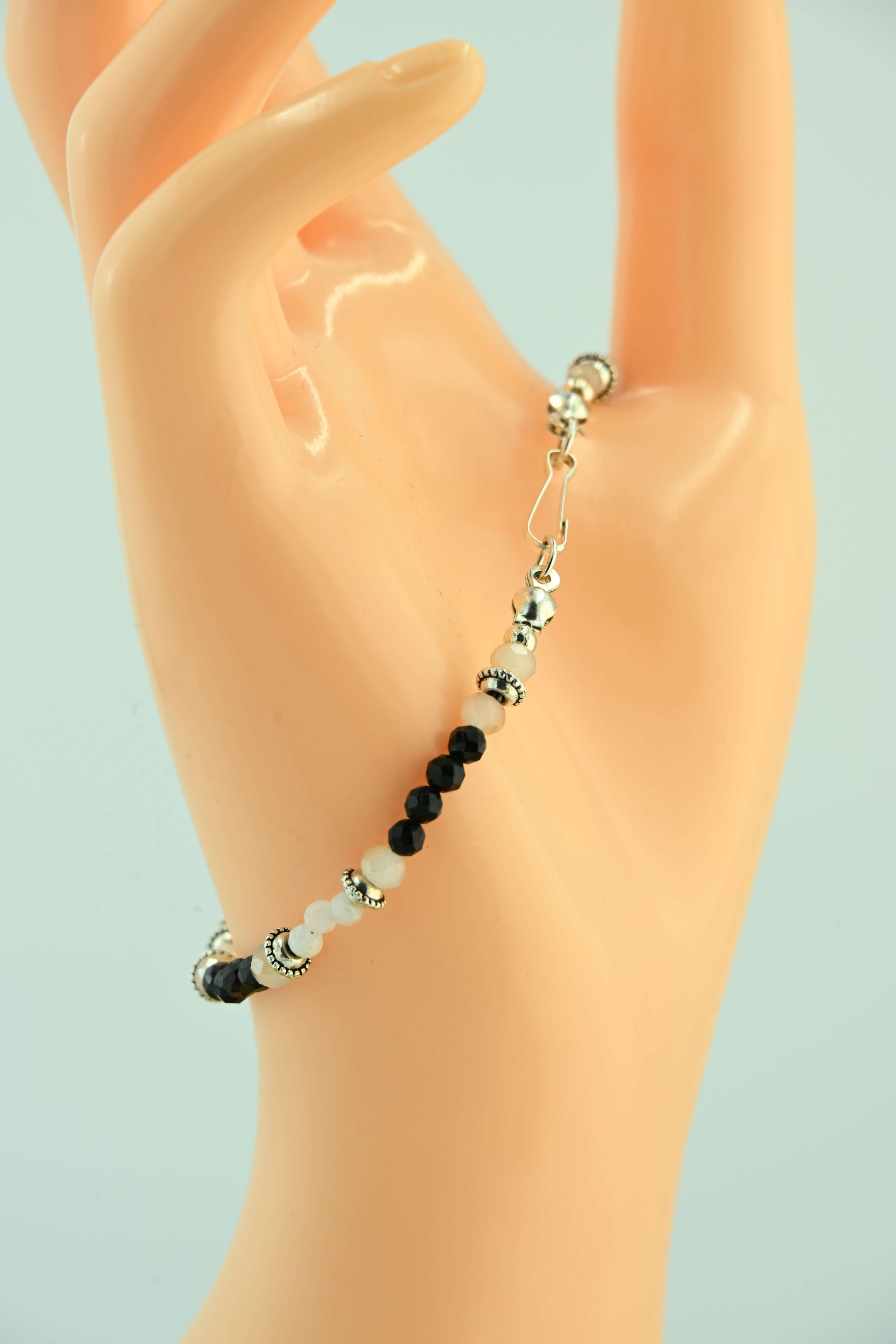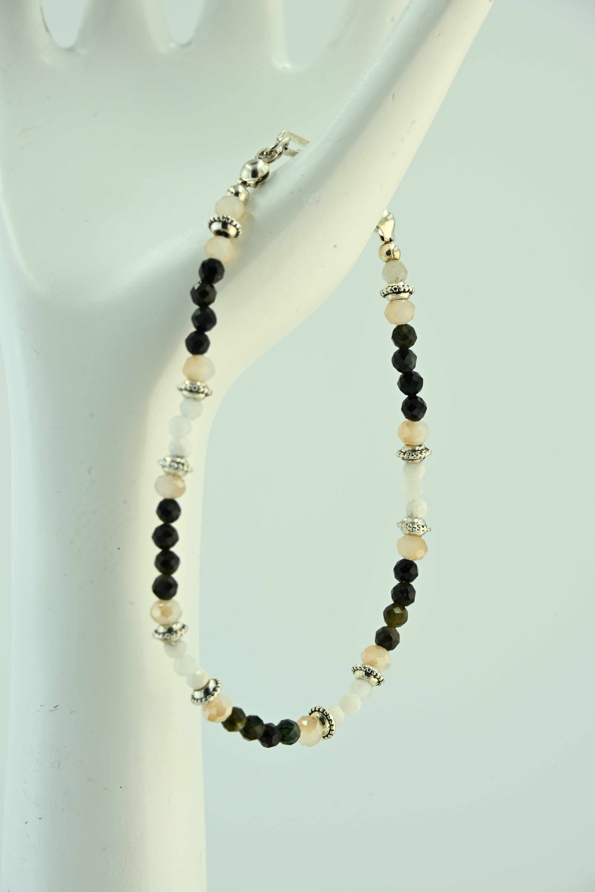 Bransoletka z turmalinem i kamieniem księżycowym – ręcznie robiona biżuteria handmade – bellamaga